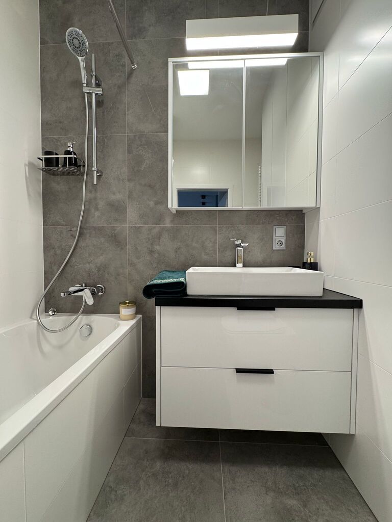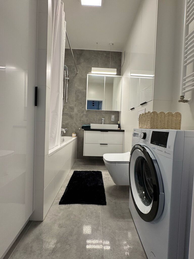 - Łazienki z WC: Nowoczesna, wyposażona w wannę.