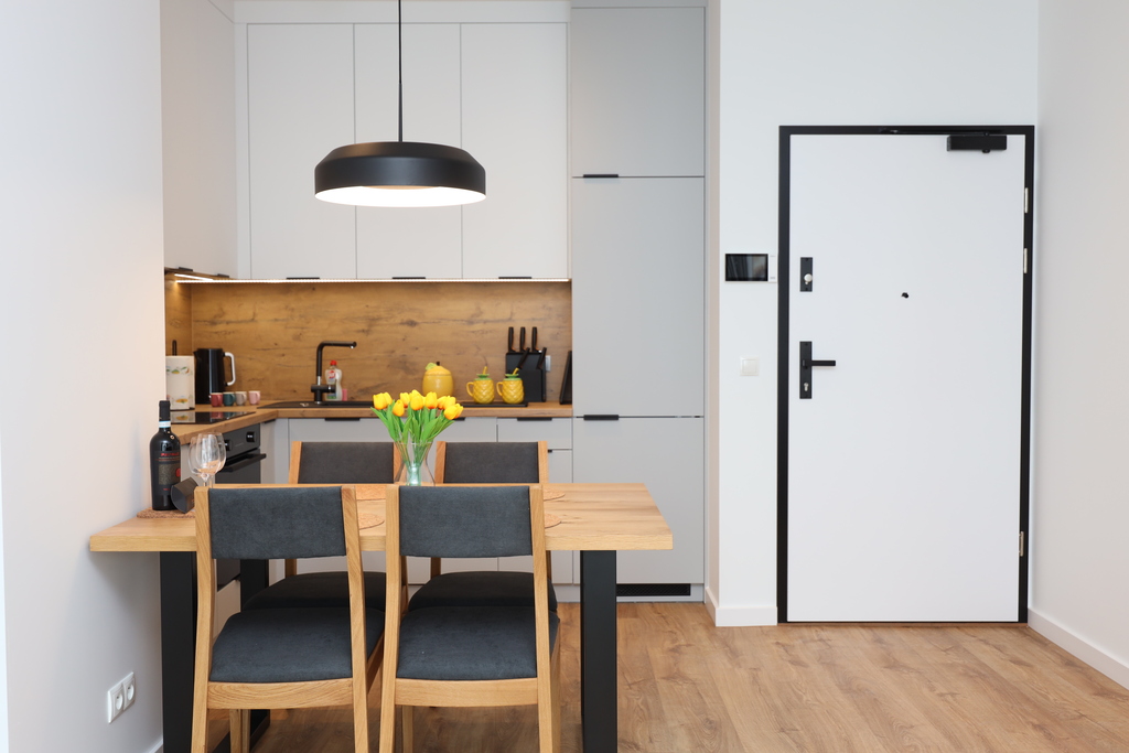 - Salonu połączonego z aneksem kuchennym – przestronny, dobrze doświetlony, idealny do relaksu oraz spędzania czasu z rodziną czy przyjaciółmi,