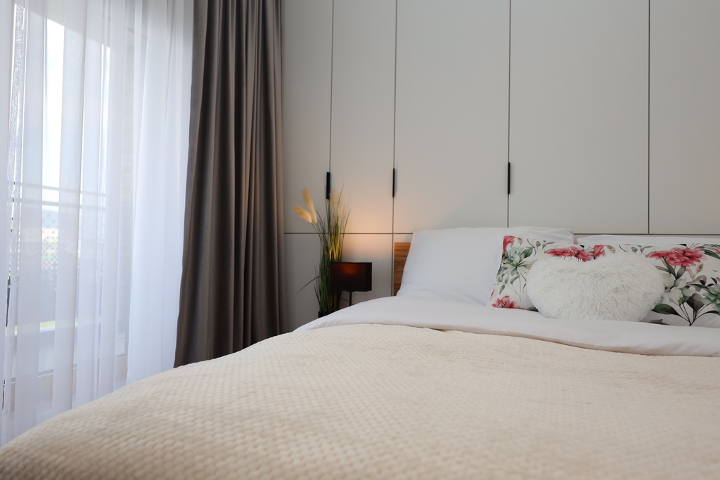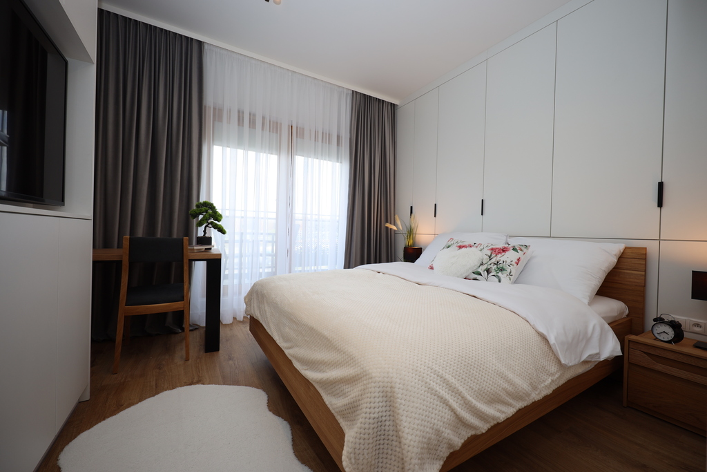 - Sypialni – cicha i przytulna, stwarzająca idealne warunki do odpoczynku, a także posiadające część biurową,