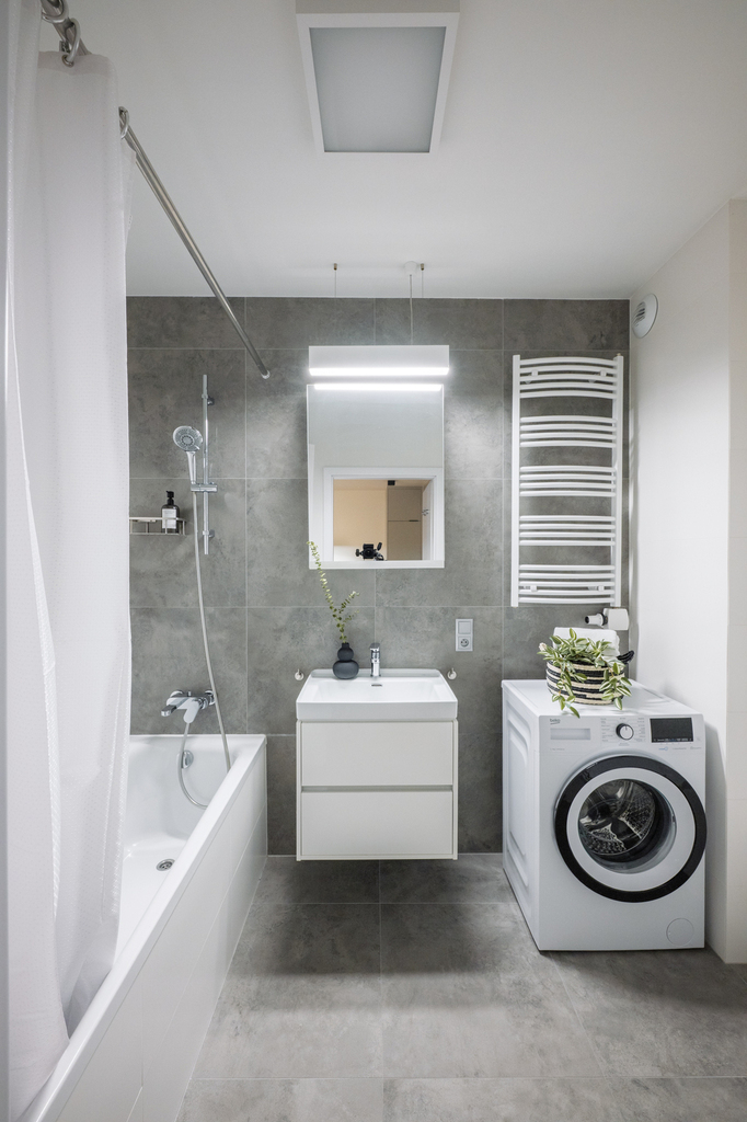 - Łazienki z WC – nowoczesna, wyposażona w wannę,