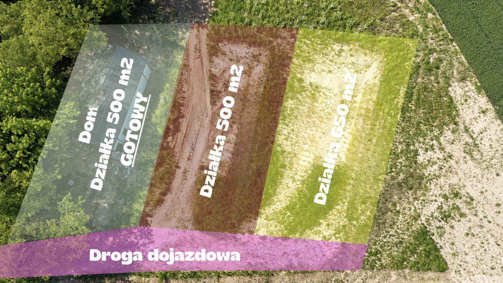 - Obok działek znajduje się już postawiony dom (stan: do zamieszkania) , który również jest przedmiotem sprzedaży (więcej informacji pod numerem telefonu)