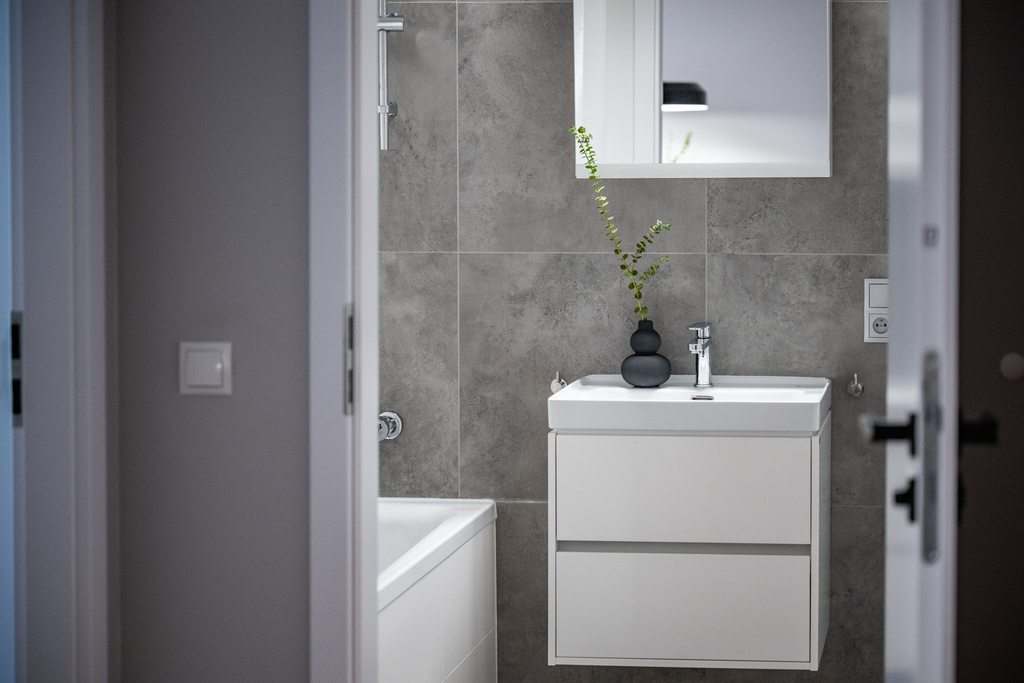 Z myślą o komforcie w mieszkaniu zamontowano klimatyzację. Najemcy będą mieć również dostęp do tv w salonie jak i w sypialni (mieszkanie wyposażono w telewizory Samsung 65' i 55'). Dodatkowe wyposażenie to: pościel, ręczniki, zastawa stołowa, garczki, odkurzacz, żelazko, deska do prasowania, suszarka na ubrania.