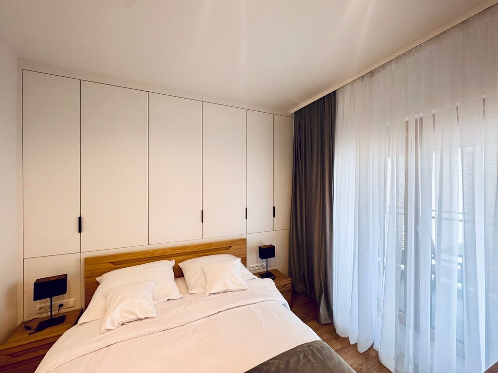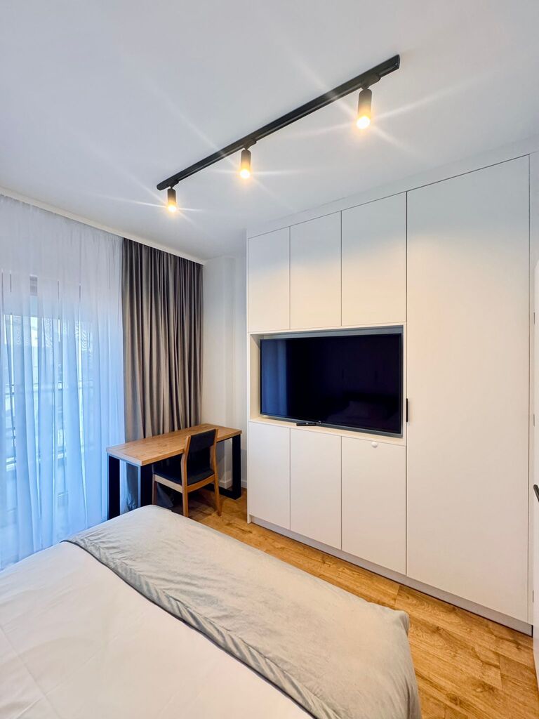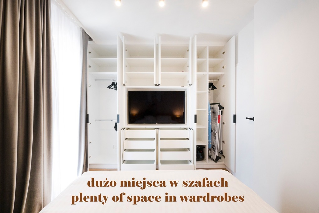 - Sypialnia – cicha i przytulna, z wydzieloną częścią biurową