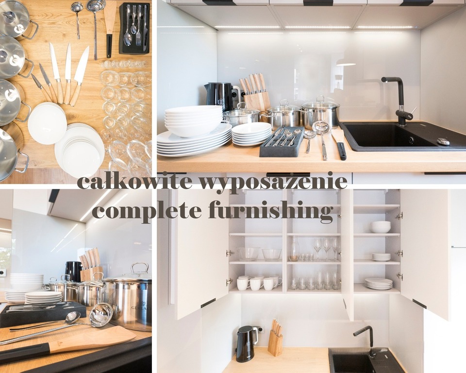 - komplet naczyń, sztućców i akcesoriów kuchennych