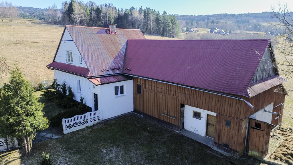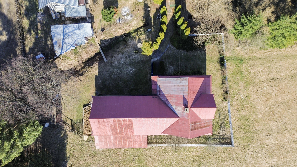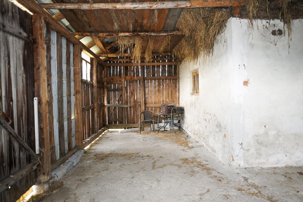 Integralną częścią oferty jest również budynek gospodarczy o powierzchni około 80 m², częściowo murowany, połączony z domem wspólnym dachem. Przestrzeń ta może pełnić funkcję garażu, warsztatu lub zaplecza magazynowego, a dodatkowe poddasze daje kolejne możliwości wykorzystania.