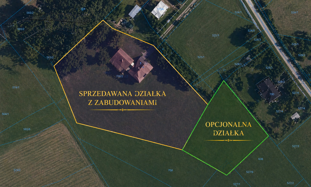 * Opcjonalnie wraz ze sprzedawaną nieruchomością, można zakupić działkę budowlaną oznaczoną numerem 703. O powierzchni 8 ar w cenie 80 000 zł