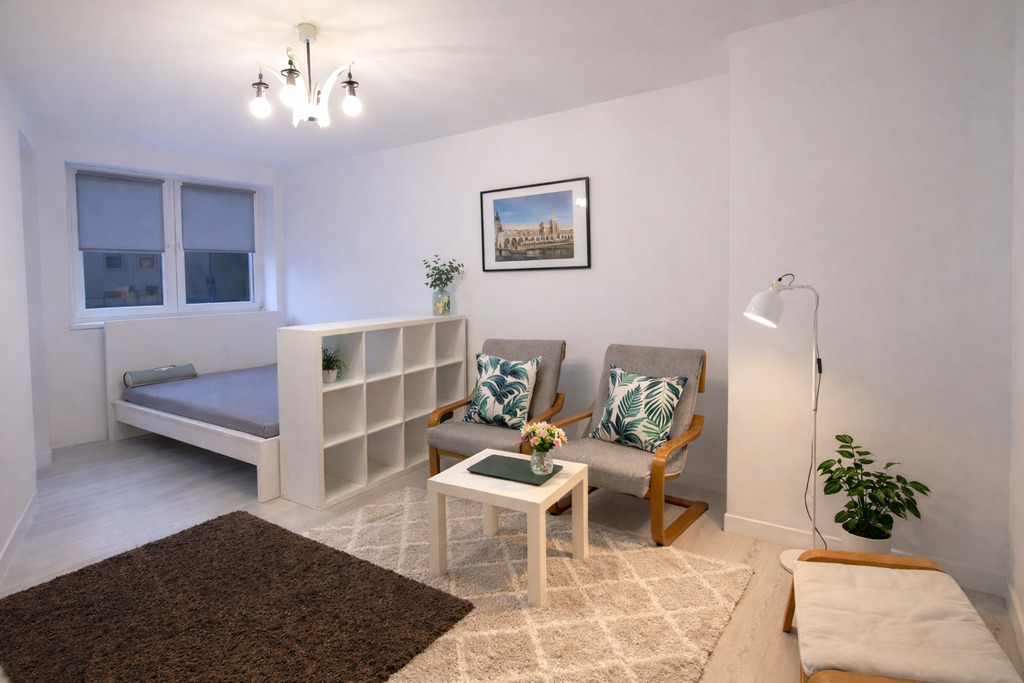 Do wynajęcia przytulna, funkcjonalna i w pełni wyposażona kawalerka, położona w jednej z najbardziej wygodnych lokalizacji Krakowa.